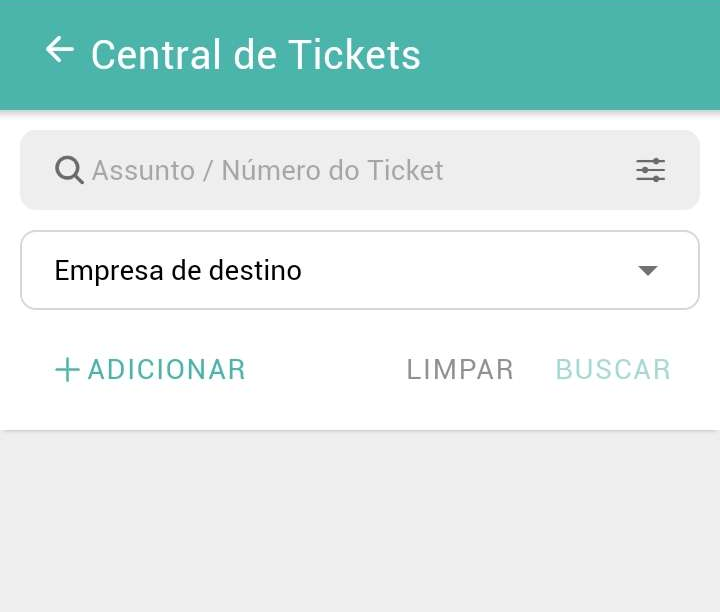 Essa visualização pode ser filtrada de acordo com a necessidade. Por exemplo, é possível filtrar os tickets por assunto, número do ticket e empresa de destino. Além disso, ao clicar no botão de ajustes (