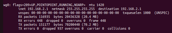 - deve aparecer uma nova interface com o tipo "POINTTOPOINT" com o IP alocado na config